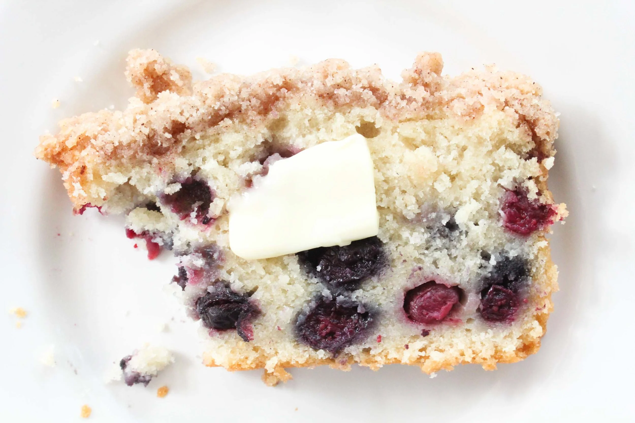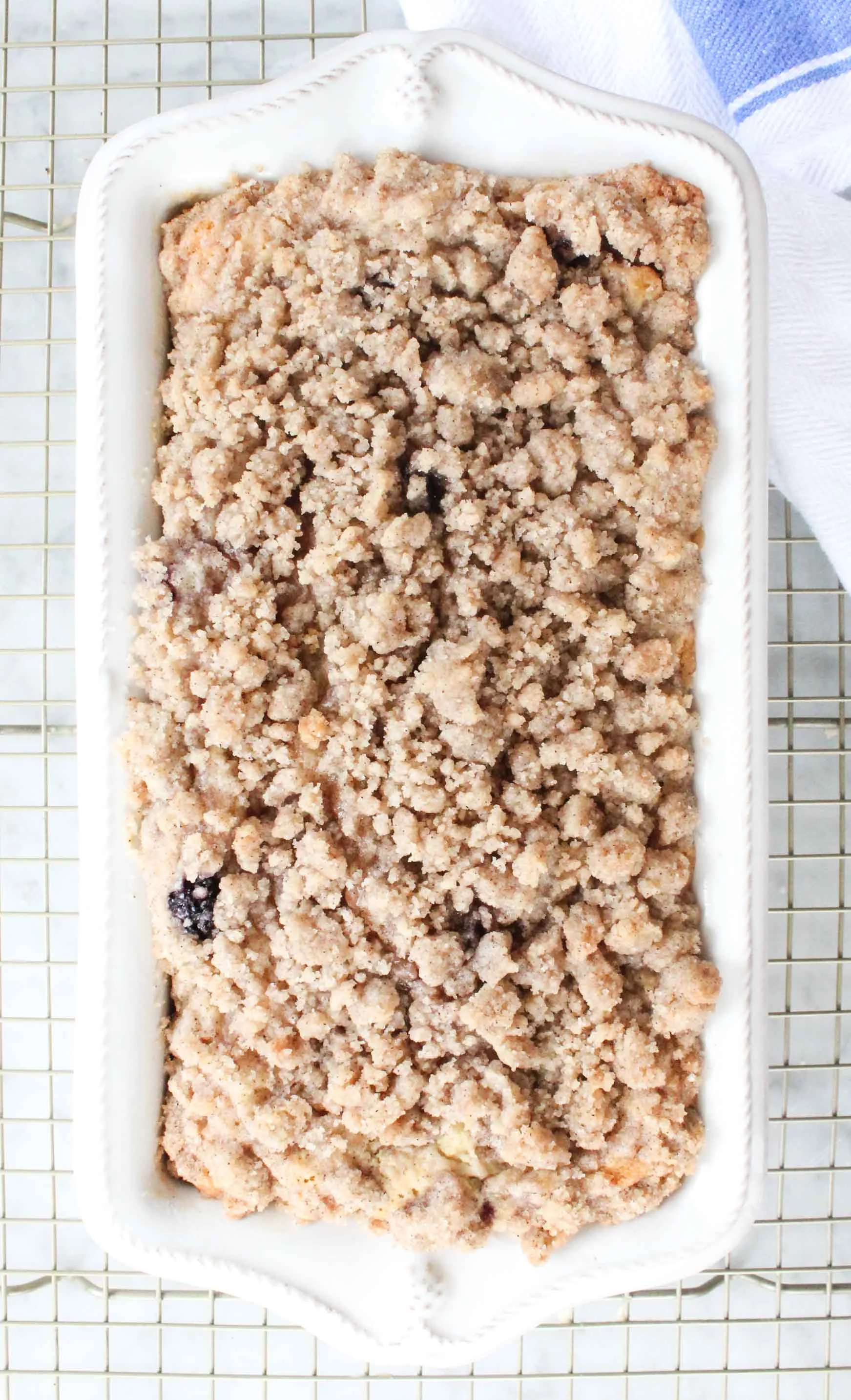 Juliska was kind enough to send me their Berry & Thread Whitewash Baking Set and I couldn't love it anymore. The loaf pan was perfect for this blueberry coffee cake and the Berry & Thread Hostess Tray is my new favorite way to serve cakes and cookies. The best part is everything is oven, dishwasher, microwave, and freezer safe!